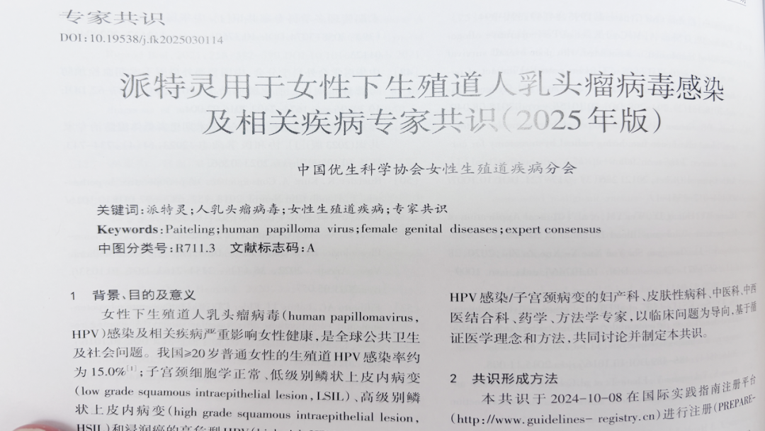 論壇期間發(fā)布的《派特靈用于女性下生殖道人乳頭瘤病毒感染及相關(guān)疾病專家共識》解讀報告,指出中藥制劑派特靈應(yīng)用于HPV感染及相關(guān)疾病治療中展現(xiàn)出獨(dú)特潛力,尤其為年輕感染者及有生育需求的患者提供了兼顧生育力保護(hù)、規(guī)避疼痛方面的新選擇。據(jù)悉,該共識由全國37家三級甲等醫(yī)院的婦產(chǎn)科、皮膚科及中醫(yī)領(lǐng)域?qū)<夜餐贫?,已?025年3月發(fā)表于《中國實(shí)用婦科與產(chǎn)科雜志》,并通過國際實(shí)踐指南注冊平臺審核。