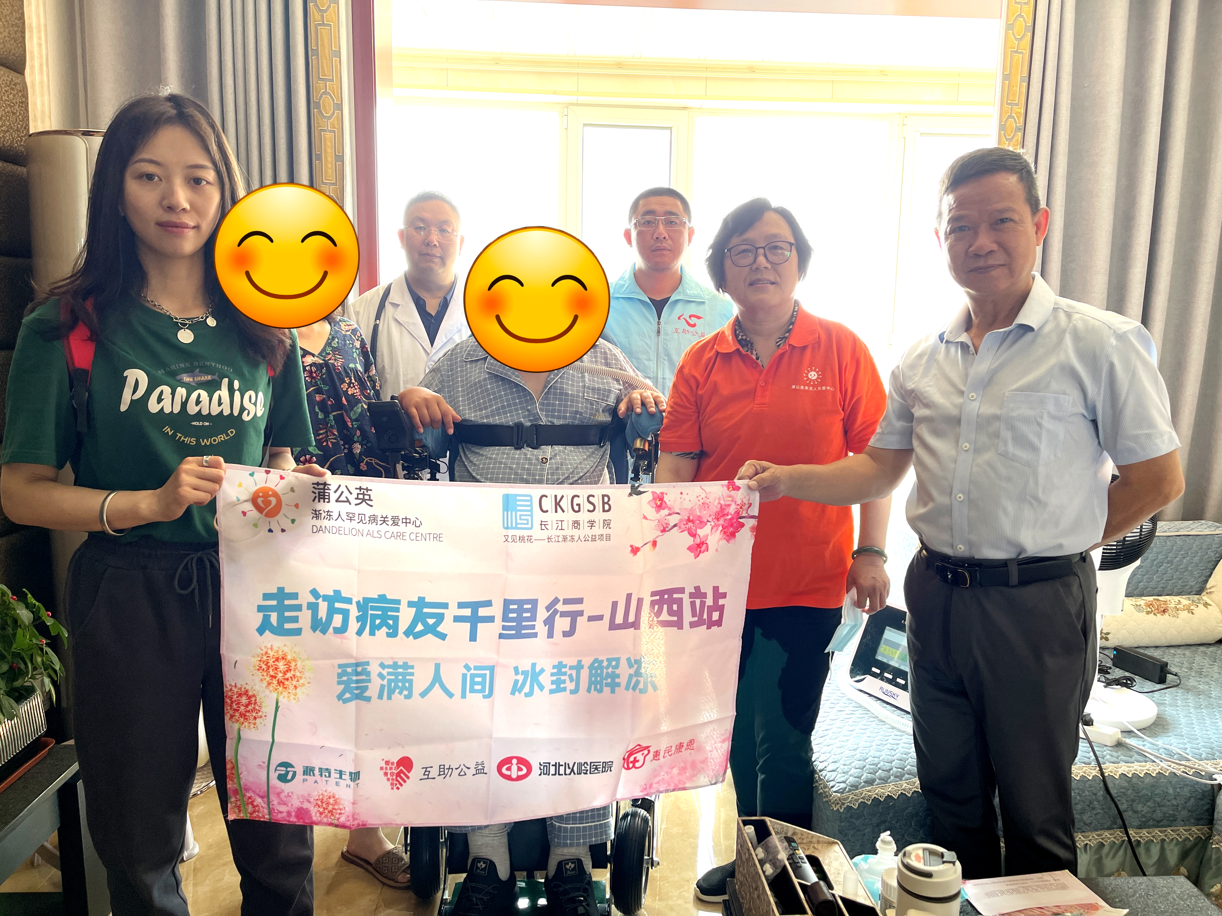 本次活動中,派特生物集團(tuán)再次捐贈善款和物資,以派特生物黨支部的名義與蒲公英組織及其它志愿組織和志愿者一道,從南到北跨越1800公里,為這些默默抗?fàn)幍募彝バ切侵?,希望以點滴匯聚的溫度,以力所能及的方式,提供人力物力上的支持,為山西地區(qū)的漸凍人朋友和家屬們,融化身體和生活帶來的堅冰。
