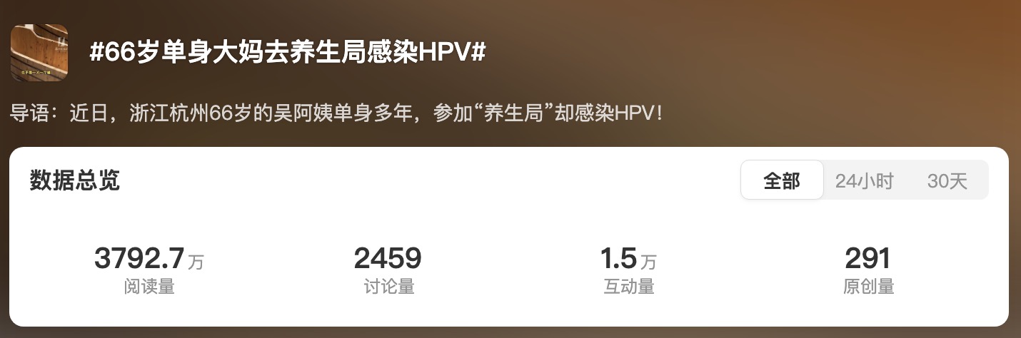 現(xiàn)在養(yǎng)生話題很火,人人都有自己的 “養(yǎng)生經(jīng)”,從晨起喝水到睡前泡腳,聊起來(lái)頭頭是道。但養(yǎng)生得科學(xué),不然自以為在養(yǎng)生,實(shí)則是在 “養(yǎng)病”。最近一則新聞——“66歲單身大媽去養(yǎng)生局感染HPV”就引起了大家的討論。
