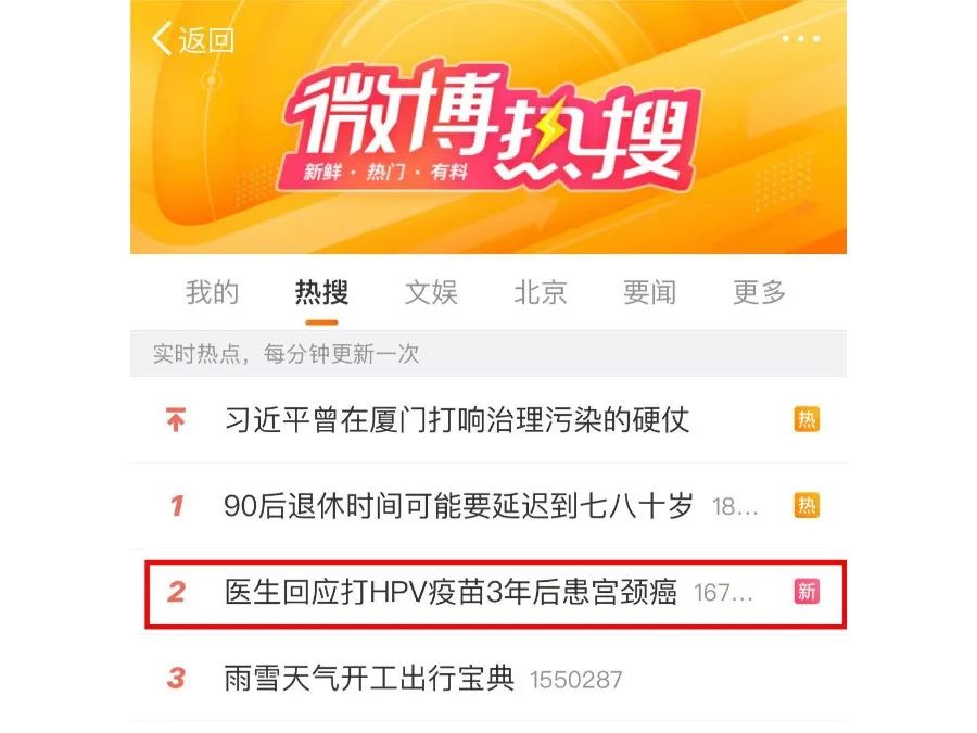 近日,微博上的一條熱搜引起了大家的關(guān)注——“醫(yī)生回應打HPV疫苗3年后患宮頸癌”。截止截稿,該話題已被2.4億人瀏覽、討論。