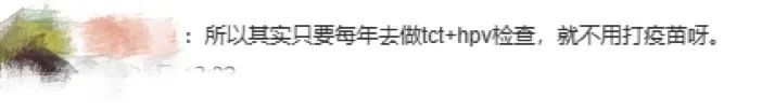 本次話題中,有網(wǎng)友評論“只要每年去做TCT+HPV檢查,就不用打疫苗呀?!?/span>